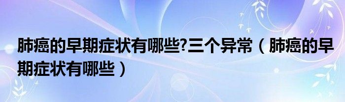 关于肺癌的早期症状有哪些?三个异常,肺癌的早期症状有哪些这个很多人还不知道,今天小六来为大家解答以上的问题,现在让我们一起来看看吧!