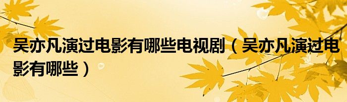 关于吴亦凡演过电影有哪些电视剧,吴亦凡演过电影有哪些这个很多人还不知道,今天小六来为大家解答以上的问题,现在让我们一起来看看吧!