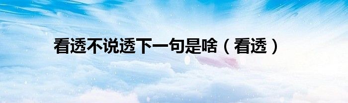 大家好,乐乐来为大家解答以下的问题,关于看透不说透下一句是啥,看透这个很多人还不知道,那么今天让乐乐带着大家一起来看看吧!
