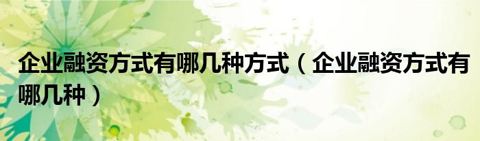 大家好,乐乐来为大家解答以下的问题,关于企业融资方式有哪几种方式,企业融资方式有哪几种这个很多人还不知道,那么今天让乐乐带着大家一起来看看吧!