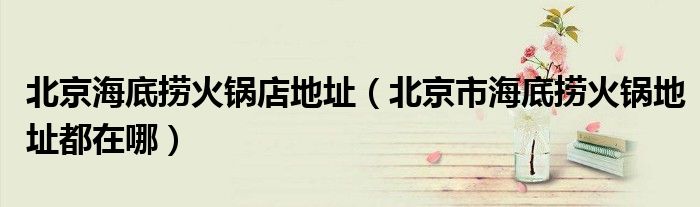 大家好,乐乐来为大家解答以下的问题,关于北京海底捞火锅店地址,北京市海底捞火锅地址都在哪这个很多人还不知道,那么今天让乐乐带着大家一起来看看吧!