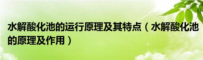 大家好,乐乐来为大家解答以下的问题,关于水解酸化池的运行原理及其特点,水解酸化池的原理及作用这个很多人还不知道,那么今天让乐乐带着大家一起来看看吧!
