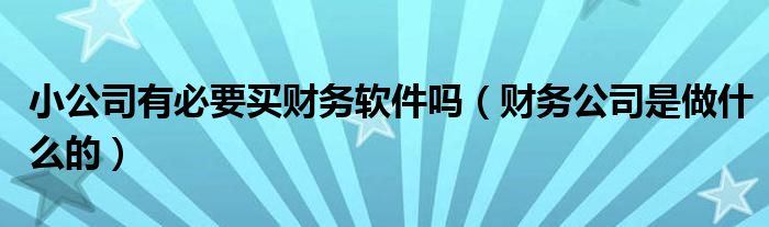 大家好,乐乐来为大家解答以下的问题,关于小公司有必要买财务软件吗,财务公司是做什么的这个很多人还不知道,那么今天让乐乐带着大家一起来看看吧!