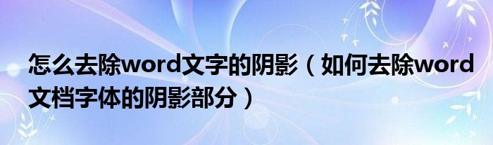 怎么去除word文字的阴影(如何去除word文档字体的阴影部分),求大佬施舍一个解决方案,感激不尽!