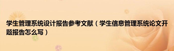 大家好,乐乐来为大家解答以下的问题,关于学生管理系统设计报告参考文献,学生信息管理系统论文开题报告怎么写这个很多人还不知道,那么今天让乐乐带着大家一起来看看吧!
