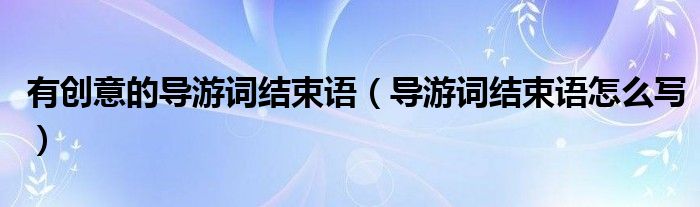 大家好,乐乐来为大家解答以下的问题,关于有创意的导游词结束语,导游词结束语怎么写这个很多人还不知道,那么今天让乐乐带着大家一起来看看吧!