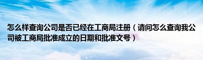 大家好,乐乐来为大家解答以下的问题,关于怎么样查询公司是否已经在工商局注册,请问怎么查询我公司被工商局批准成立的日期和批准文号这个很多人还不知道,那么今天让乐乐带着大家一起来看看吧!