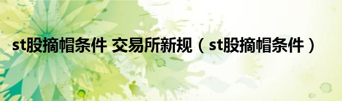 大家好,乐乐来为大家解答以下的问题,关于st股摘帽条件 交易所新规,st股摘帽条件这个很多人还不知道,那么今天让乐乐带着大家一起来看看吧!