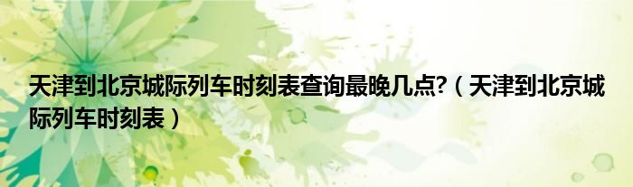大家好,乐乐来为大家解答以下的问题,关于天津到北京城际列车时刻表查询最晚几点?,天津到北京城际列车时刻表这个很多人还不知道,那么今天让乐乐带着大家一起来看看吧!