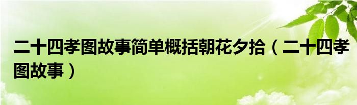 大家好,乐乐来为大家解答以下的问题,关于二十四孝图故事简单概括朝花夕拾,二十四孝图故事这个很多人还不知道,那么今天让乐乐带着大家一起来看看吧!