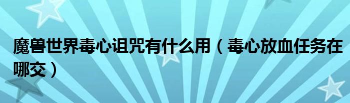 大家好,乐乐来为大家解答以下的问题,关于魔兽世界毒心诅咒有什么用,毒心放血任务在哪交这个很多人还不知道,那么今天让乐乐带着大家一起来看看吧!