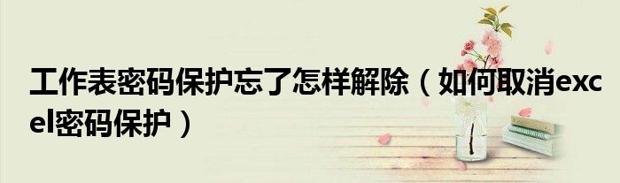 工作表密码保护忘了怎样解除(如何取消excel密码保护),急!求解答,求此刻回复!